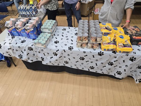 Passing out supplies for our veterans for their furry family members at Hines VA during a monthly people and pet food pantry.