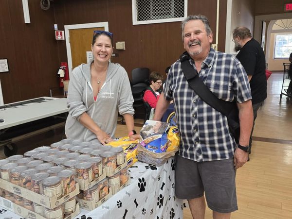 Veteran Terry Smith and his service pooch, Sadie, who were happy to have a received a comfy bed and additional pet supply assistance from us!
