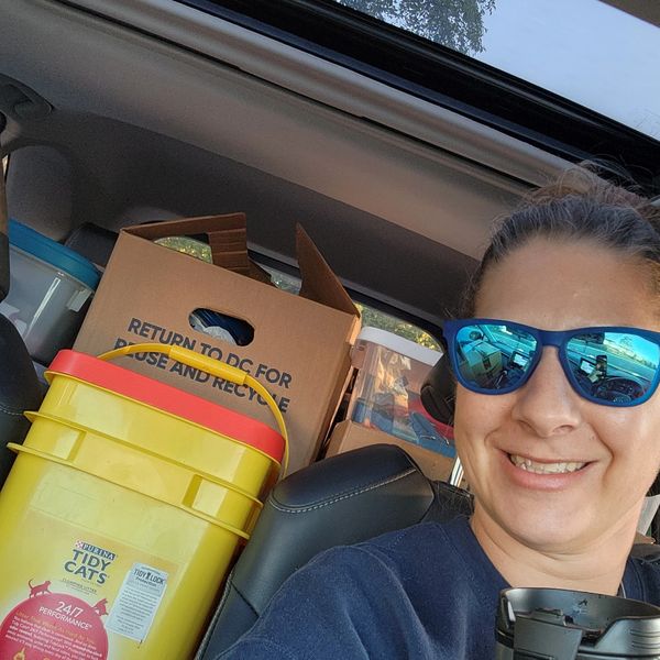 Executive Director Andrea Wendlandt with her car packed full to the brim with pet supplies for our Veterans heading to Hines VA!